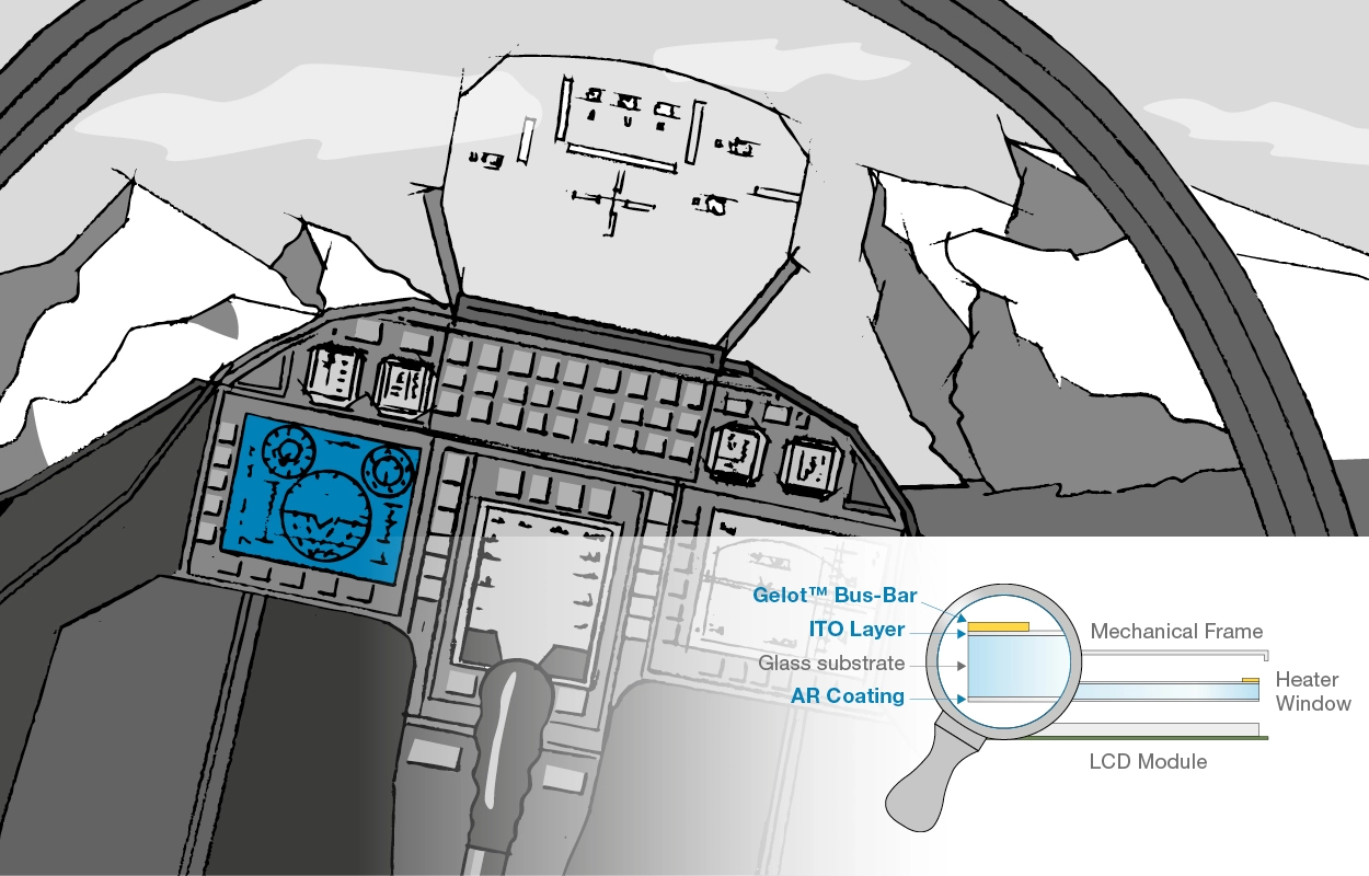 Integrated display solutions are ideal solutions to provide data and information in the cockpit or on the pilot’s visor. The respective person needs to be able to gather information within a minimum amount of time and in various conditions, e. g. day or night. Undesirable influences – for example, when pilots are vexed by laser pointers during their final descent – need to be safely eliminated. Materion Balzers Optics’s product portfolio offers a multitude of coating solutions which, when combined, ensure a display solution and also reliable blocking of undesirable wave lengths. Whether it’s about our solderable “GELOT™” gold coating, conductive and transparent coatings, ITO and IMITO, or high-performance, high-bandwidth “IRALIN™” anti-reflection coatings, Materion Balzers Optics has years of experience and fundamental skills as well as a foundation of successful application solutions.