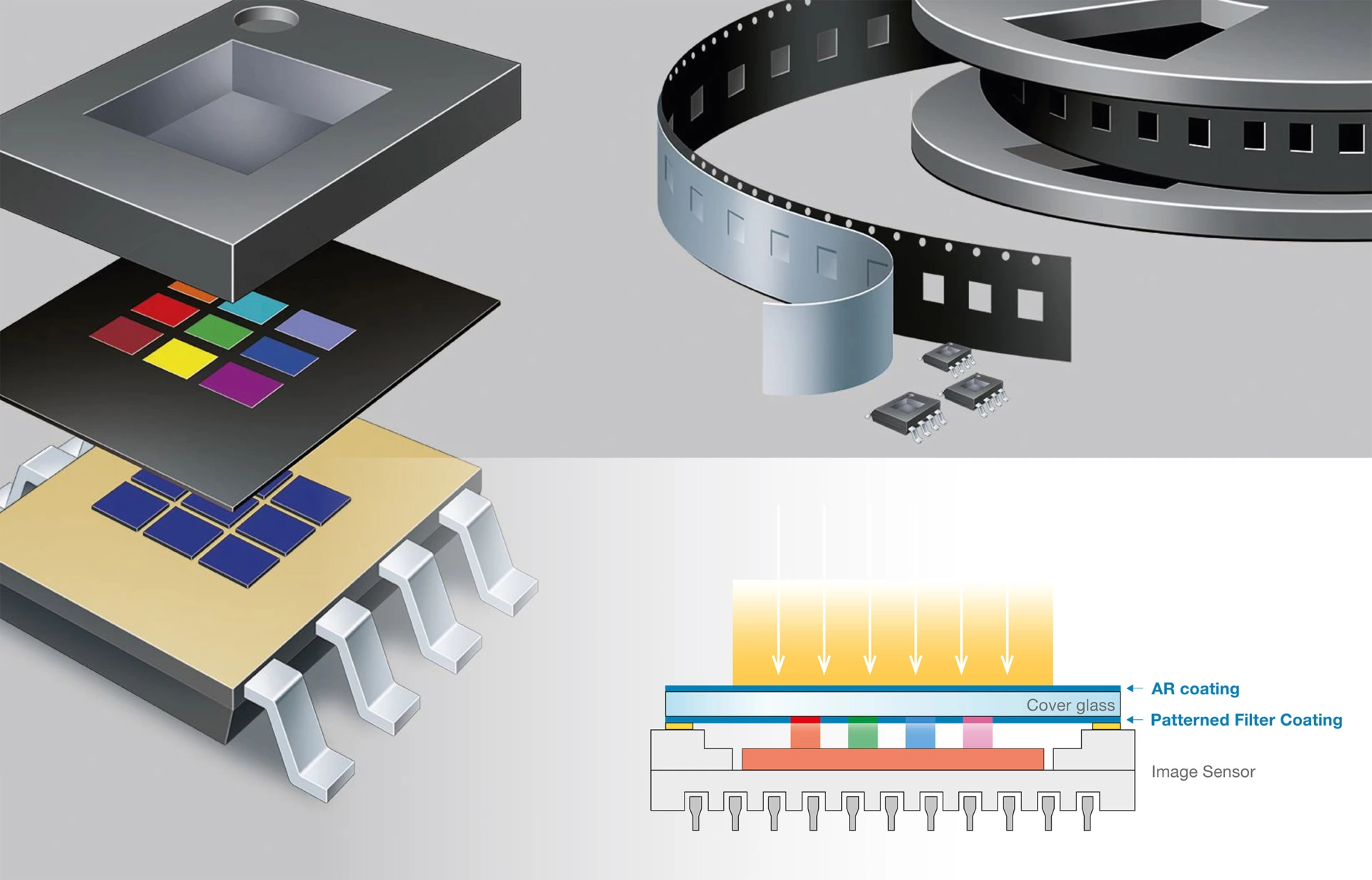 Our customizable dielectric coatings allow the design of sophisticated filter characteristics for accurate ambient light- and color measurements, ideal for use in mobile devices and other consumer electronics.