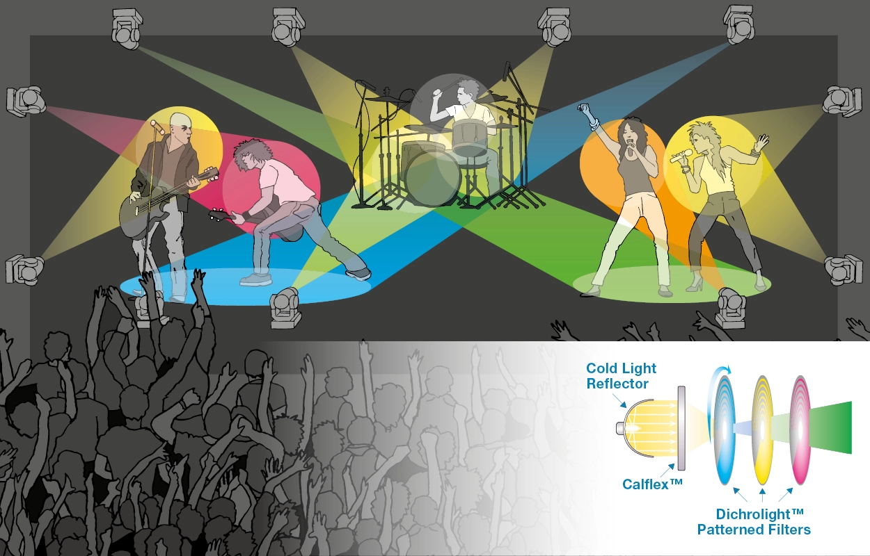 Dichroic filters/mirrors meet very narrow spectral band edge tolerances, highest degree of spectral stability and very low residual optical absorption loss. The dichroic filters/mirrors are produced with a unique sputtering deposition process, providing very dense filter coatings with excellent optical and mechanical stability, both at higher operating temperatures and under varying environmental conditions.